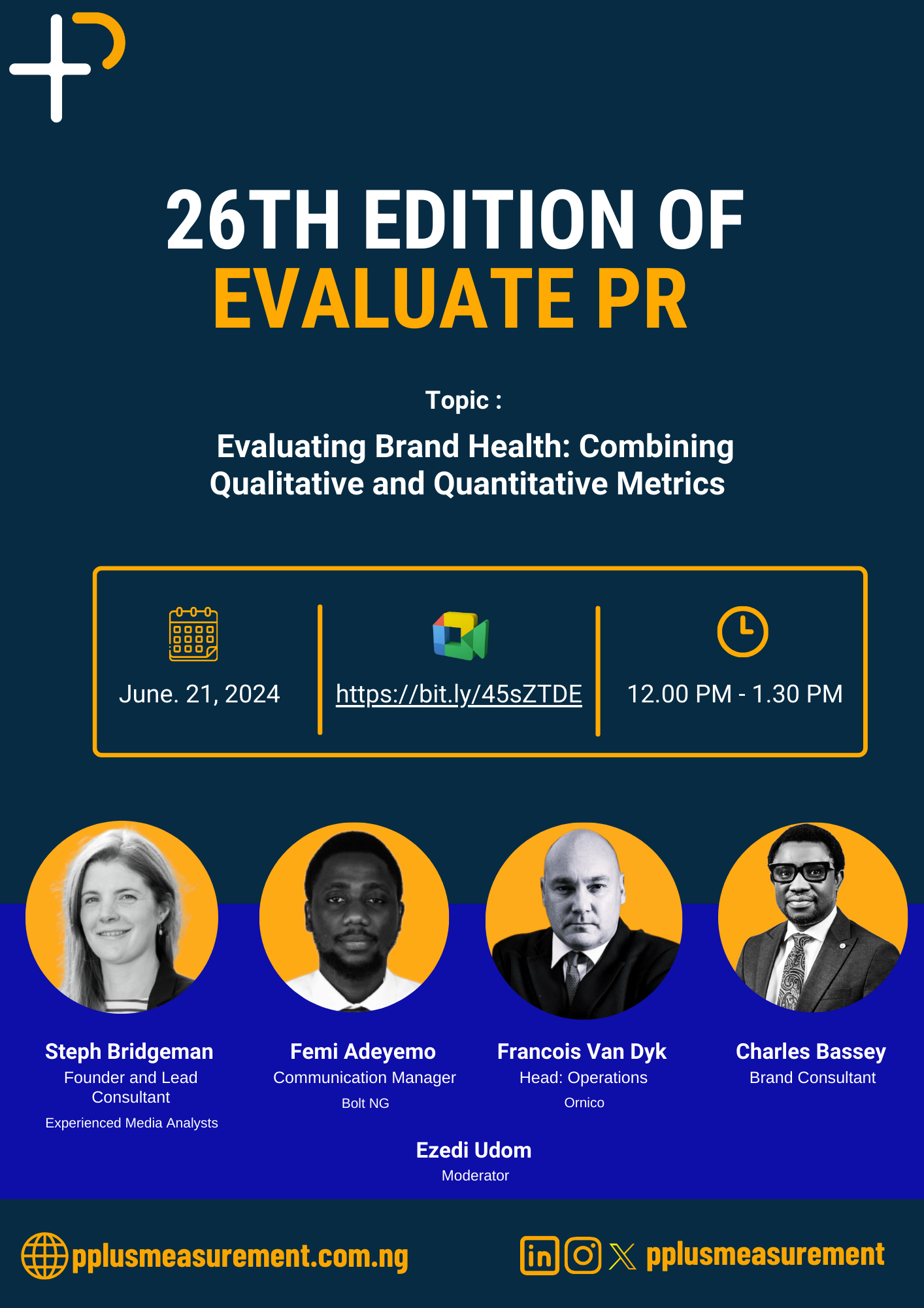 #EvaluatePR has firmly established itself as a foremost global platform, uniting PR professionals, PR measurement specialists, industry experts, and academics to explore the evolving landscapes of public relations, communications, and measurement. This edition promises to captivate participants with a distinguished lineup of guest speakers. Among them are Steph Bridegman, Founder and Lead Consultant; Femi Adeyemo Communication Manager Bolt Ng; Francois Van Dyk, Head of Operations Ornico, and Charles Bassey, Brand Consultant.